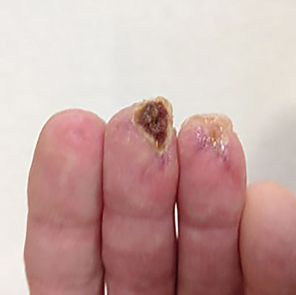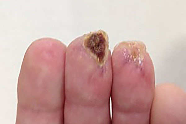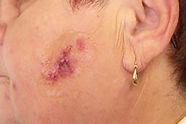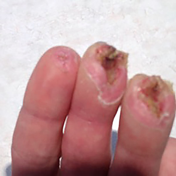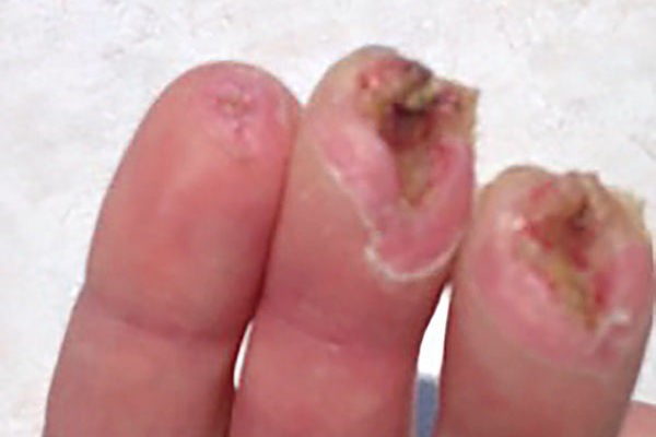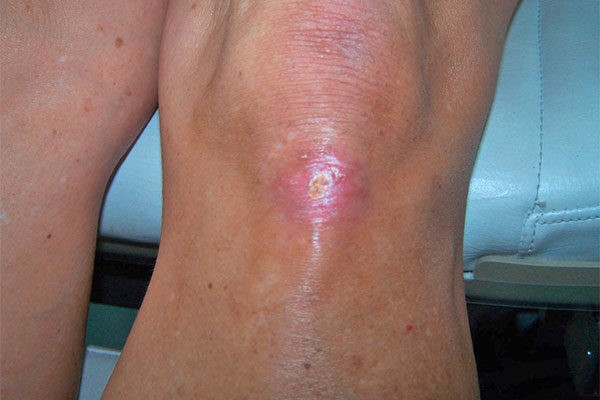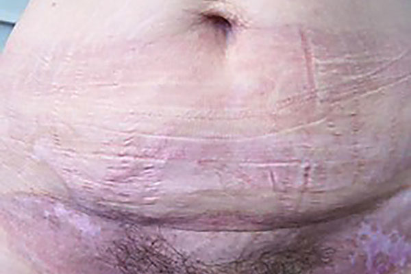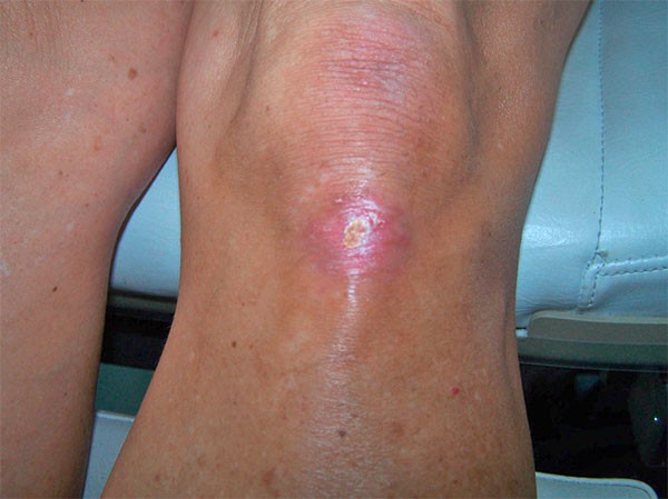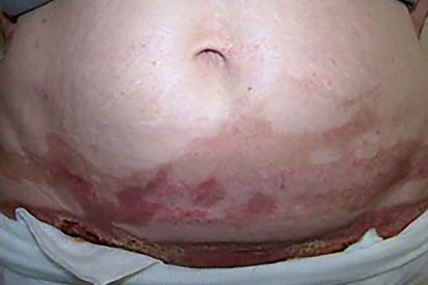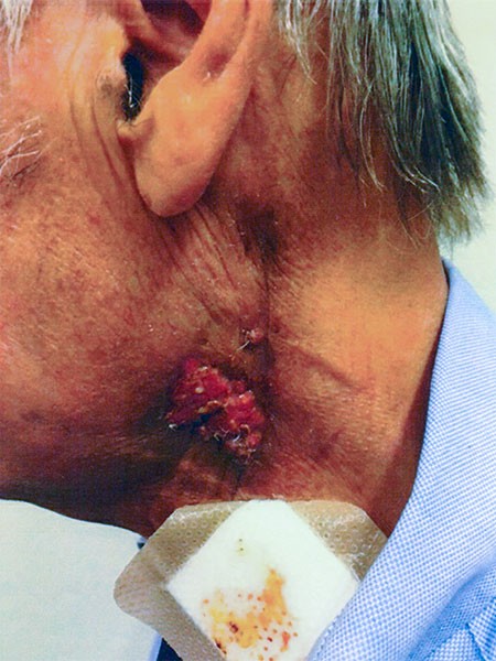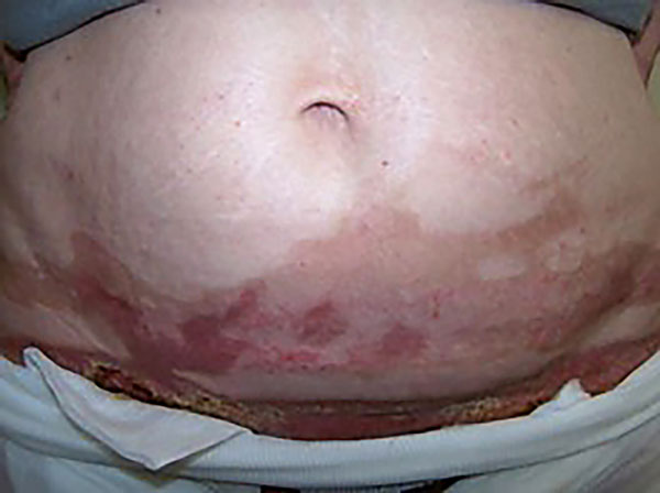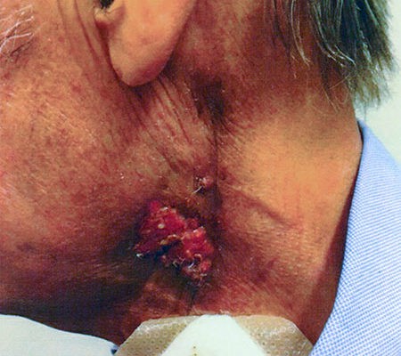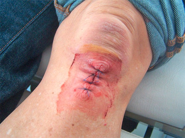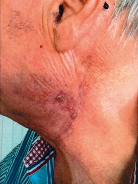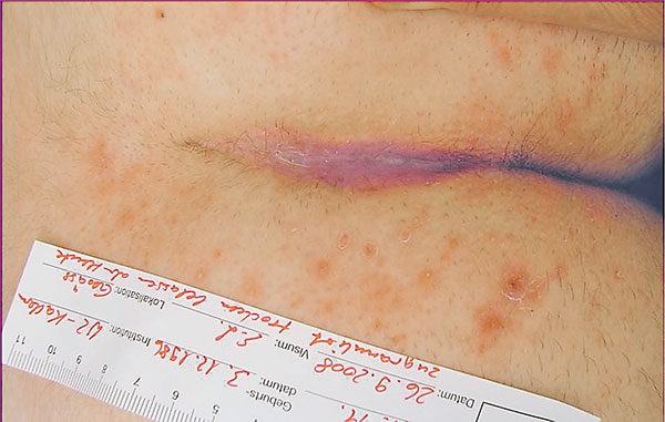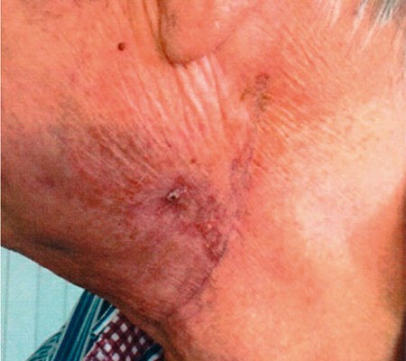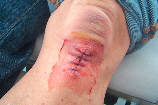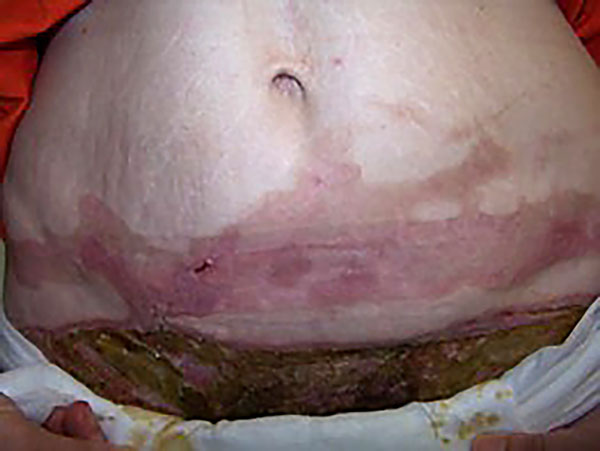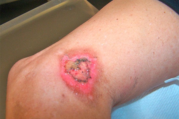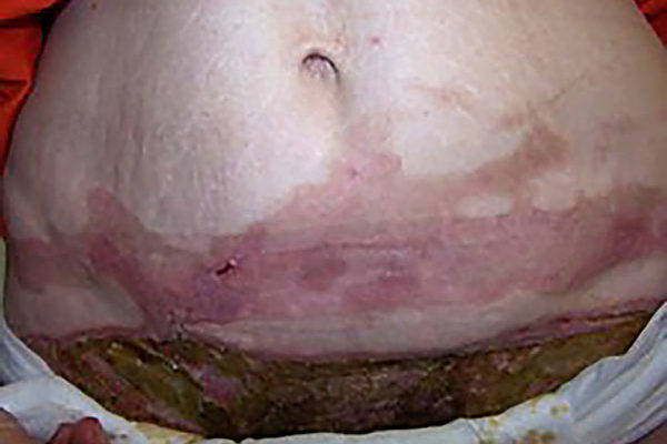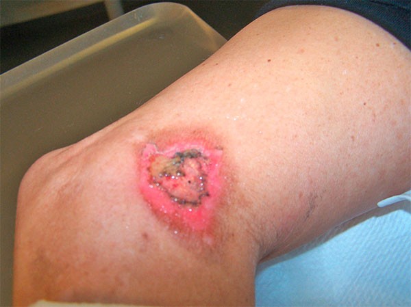 Followed by local monotherapy with ActiMaris® wound irrigation solution sensitive for 20-30 minutes, followed by ActiMaris® wound gel once a day for 4 weeks. After for weeks of local treatment with ActiMaris® Wound Irrigation Solution sensitive and ActiMaris® Wound Gel, complete wound healing and skin epithelisation.